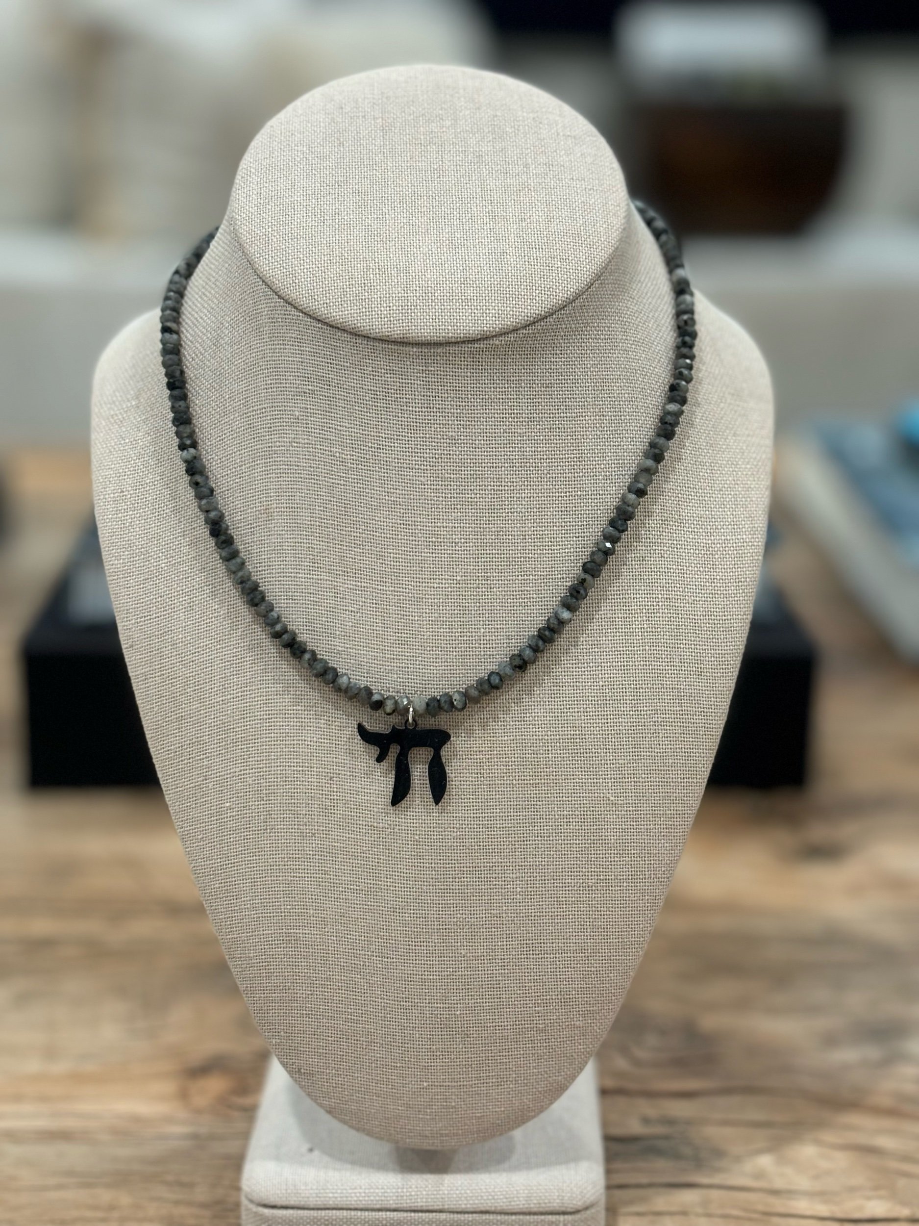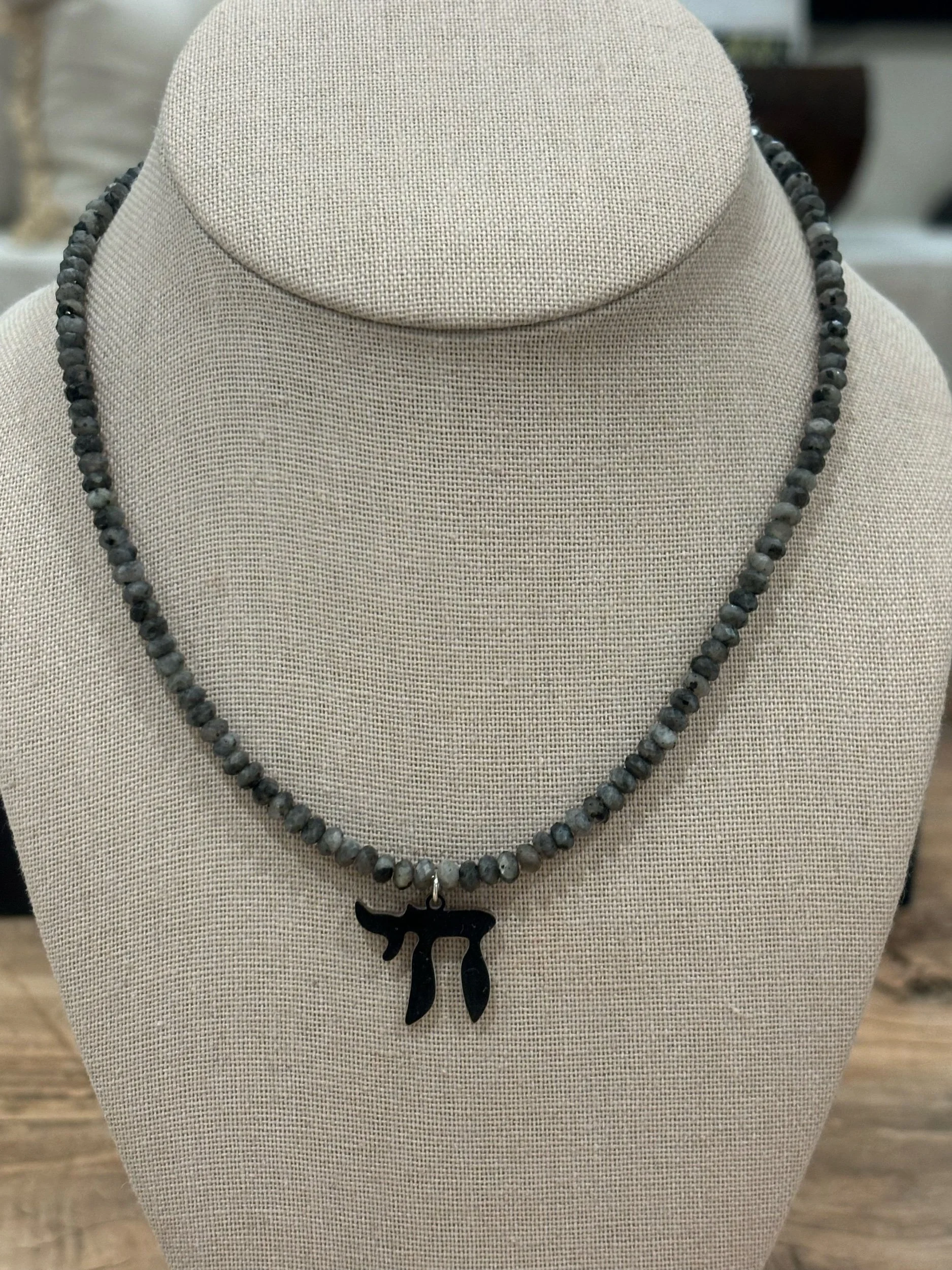 Shop › Blue Pearl Chai Image 1 of 2 Image 2 of 2 Blue Pearl Chai $52.00 Blue Pearl beads with a silver Chai pendant. Adjustable length. Get notified when this product is back in stock Quantity: Add To Cart Added! Blue Pearl beads with a silver Chai pendant. Adjustable length.