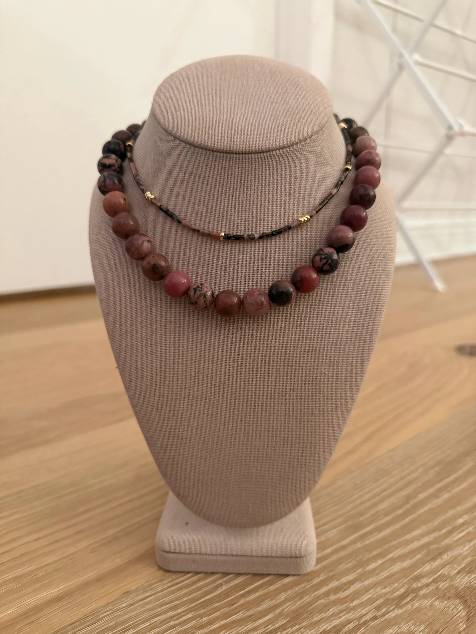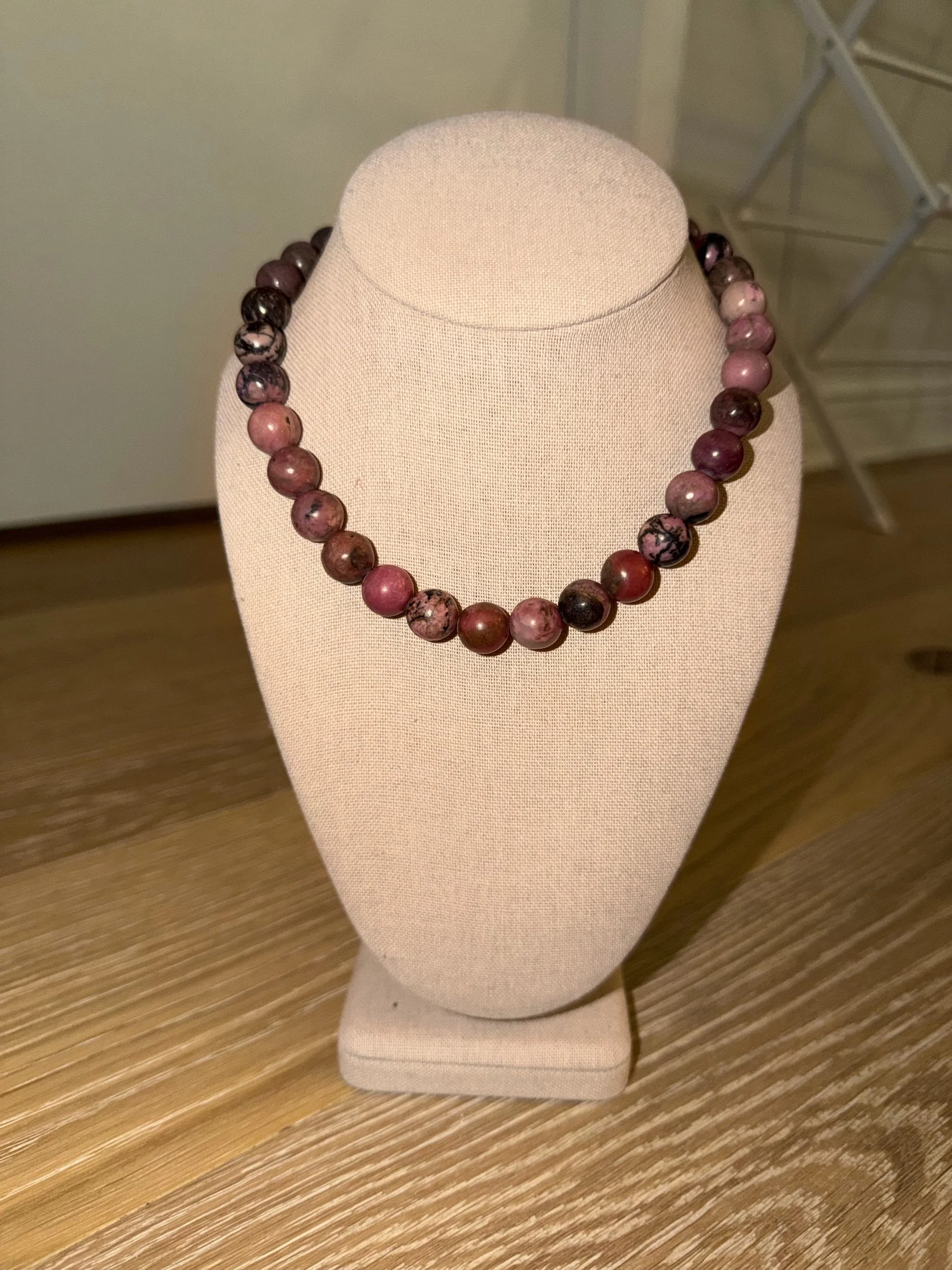 Shop › Blush Image 1 of 5 Image 2 of 5 Image 3 of 5 Image 4 of 5 Image 5 of 5 Blush $50.00 12mm Black Lace Rhodonite beadsGold lobster clasp Get notified when this product is back in stock Quantity: Add To Cart Added! 12mm Black Lace Rhodonite beadsGold lobster clasp